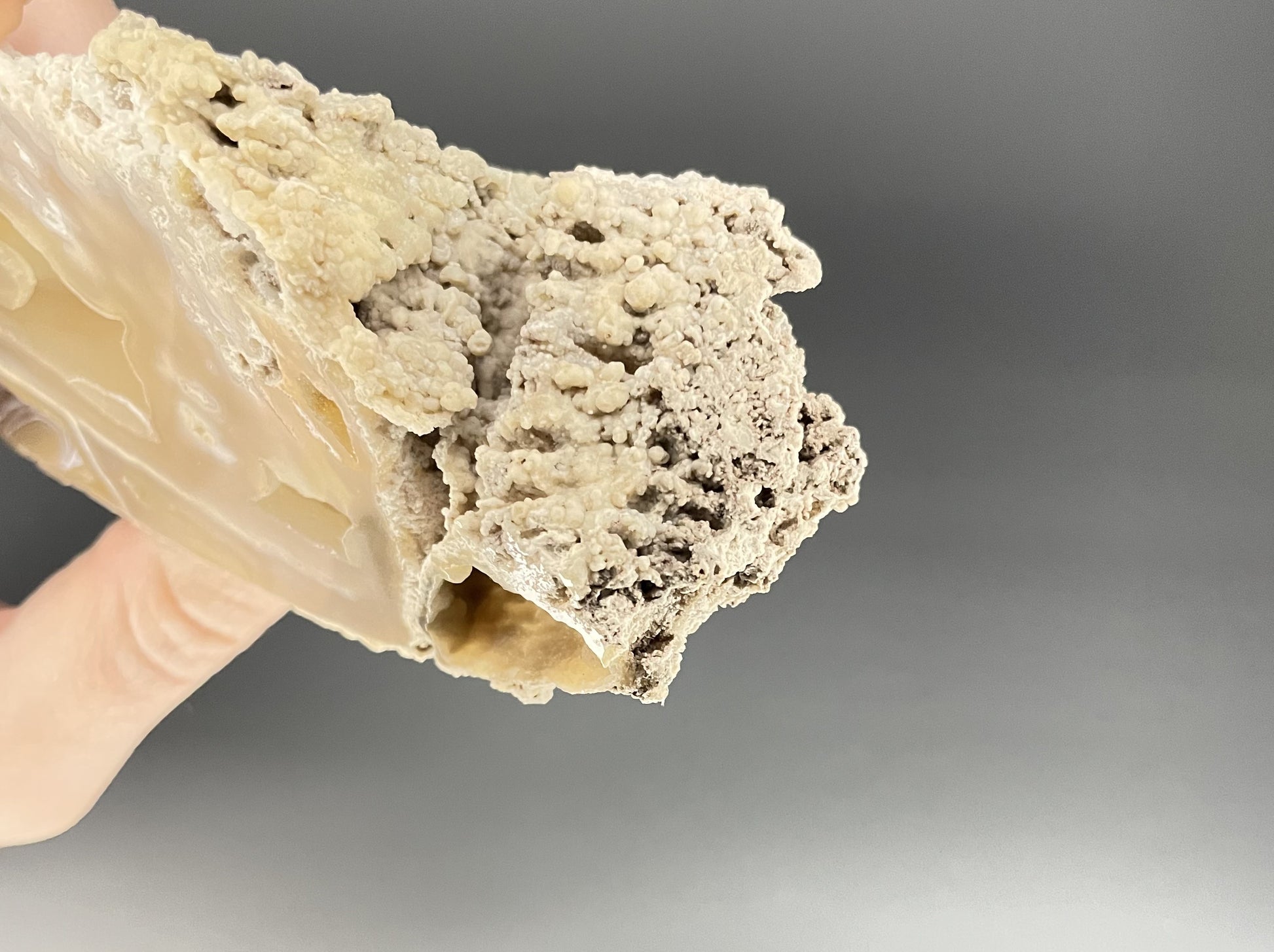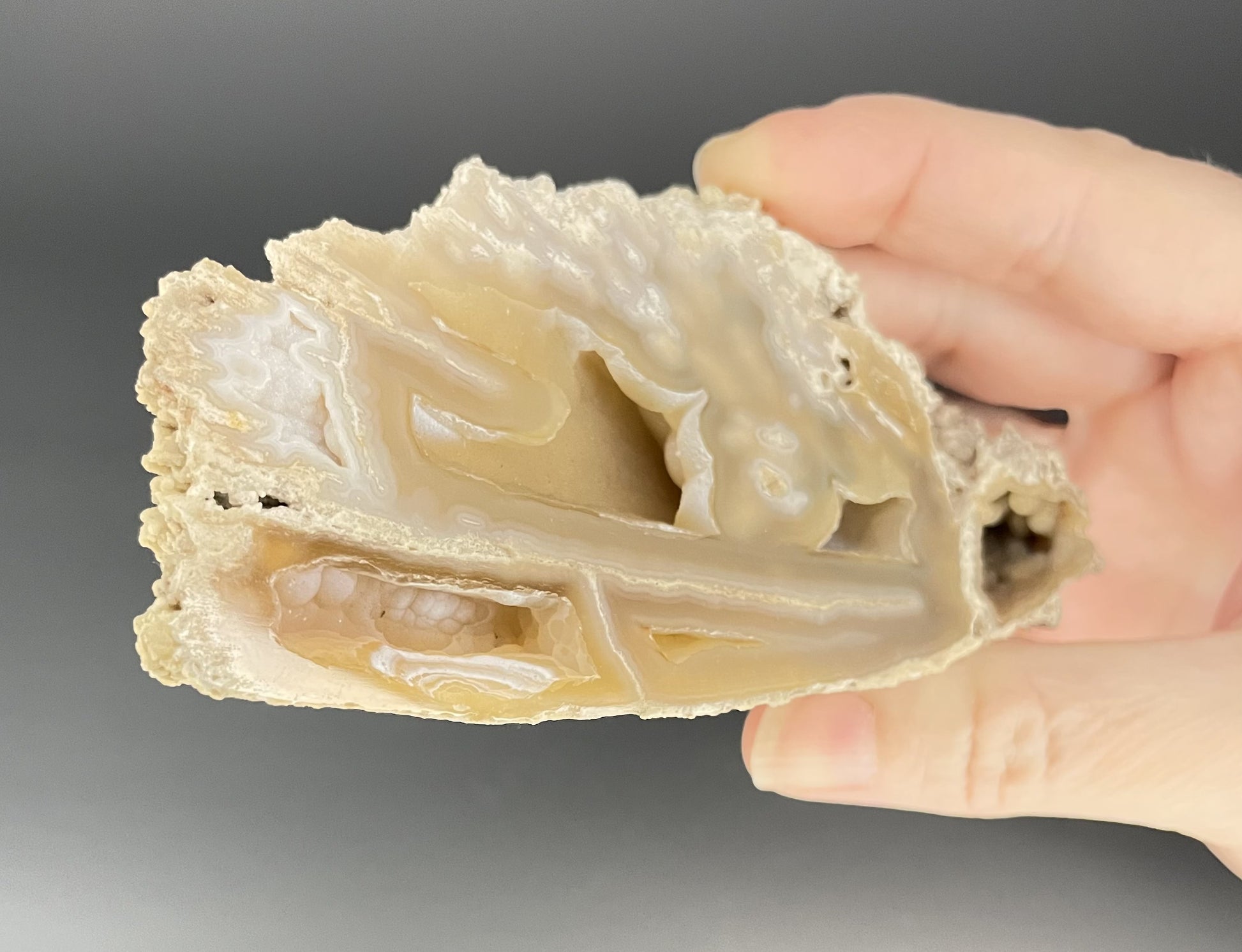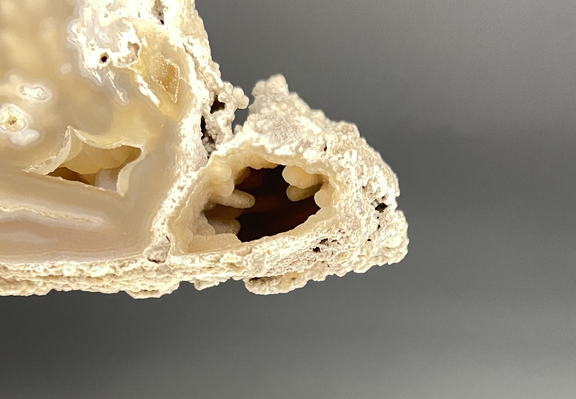- Silica replaces the calcium carbonate in the coral with chalcedony, creating agatized coral.