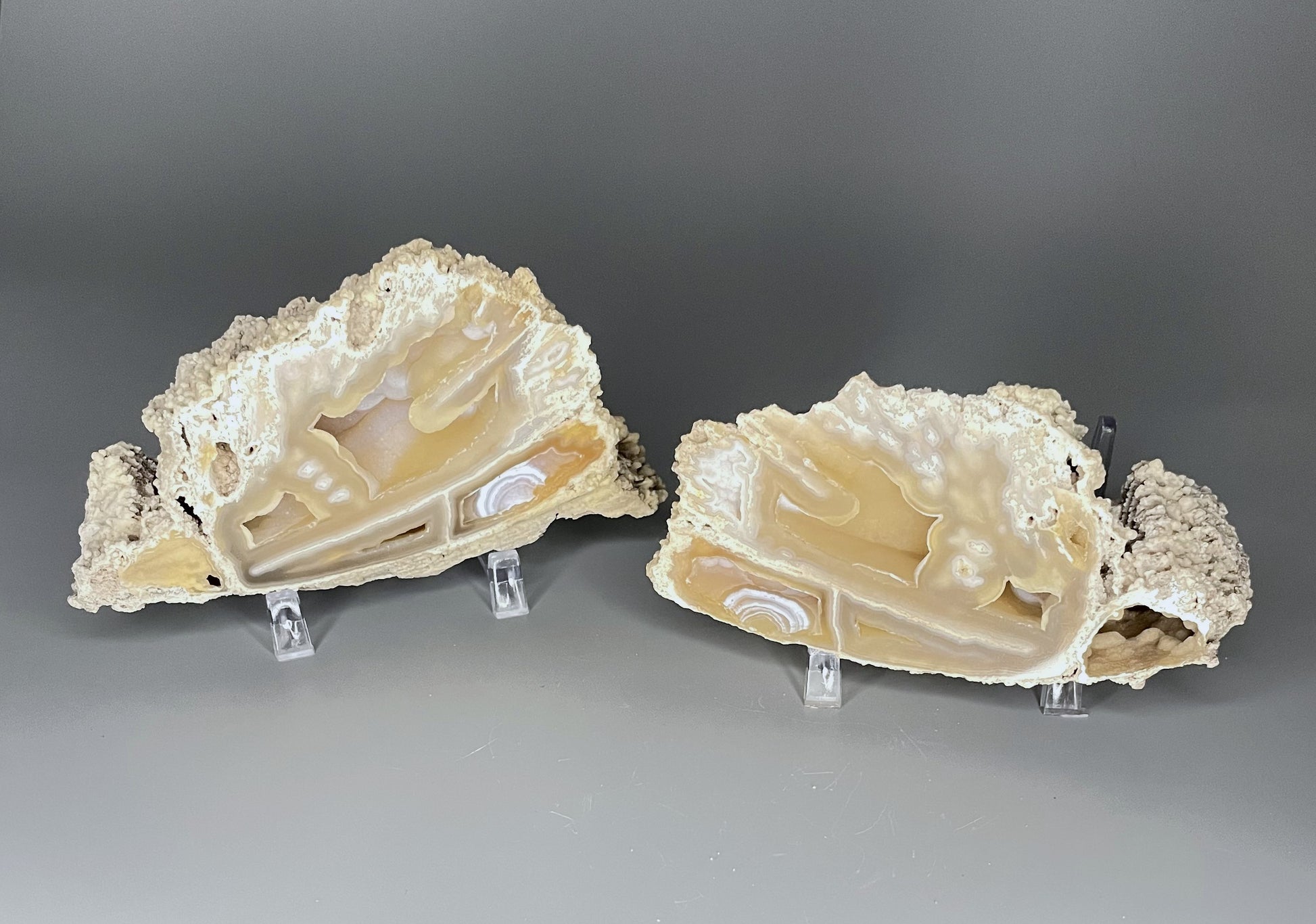This agatized corral pair is straight from Florida and features detailed patterns and textures.