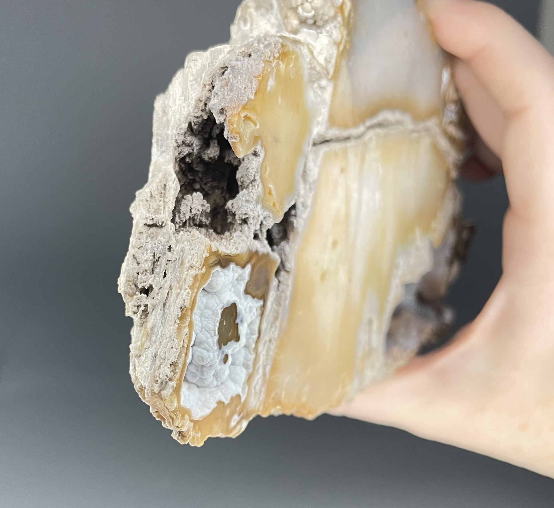 - Silica replaces the calcium carbonate in the coral with chalcedony, creating agatized coral.