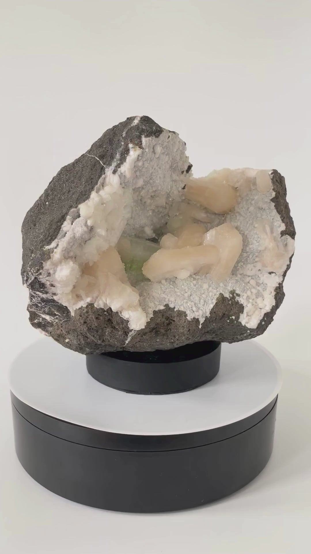 Large Green Apophyllite with Stilbite on Heulandite | 113 ounces